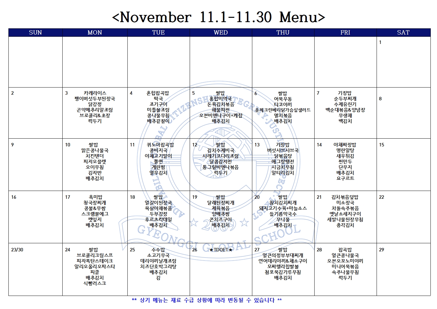*상기 메뉴는 재료 수급 상황에 따라 변동될 수 있습니다.