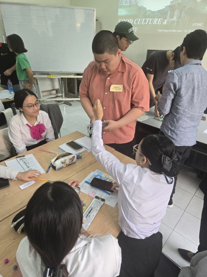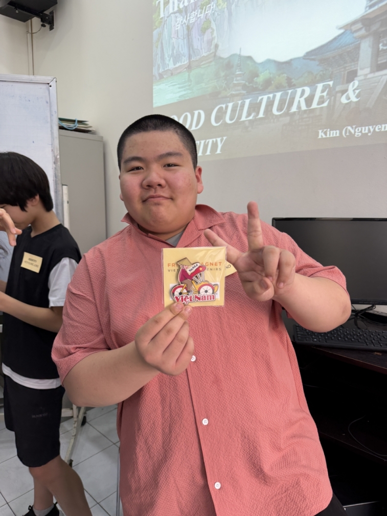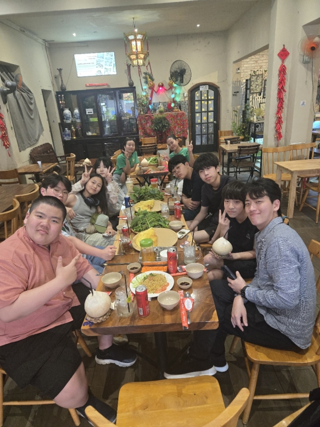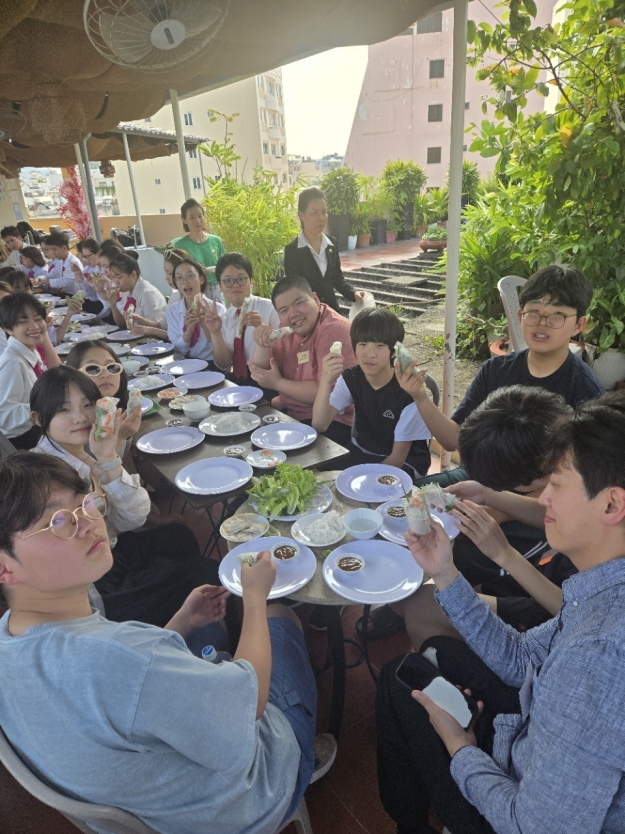 기념품을 나누며 한국 문화를 소개하기도 하였습니다. 또한 베트남 전통 음식인 월남쌈을 직접 만들어보는 체험도 진행하였습니다.
