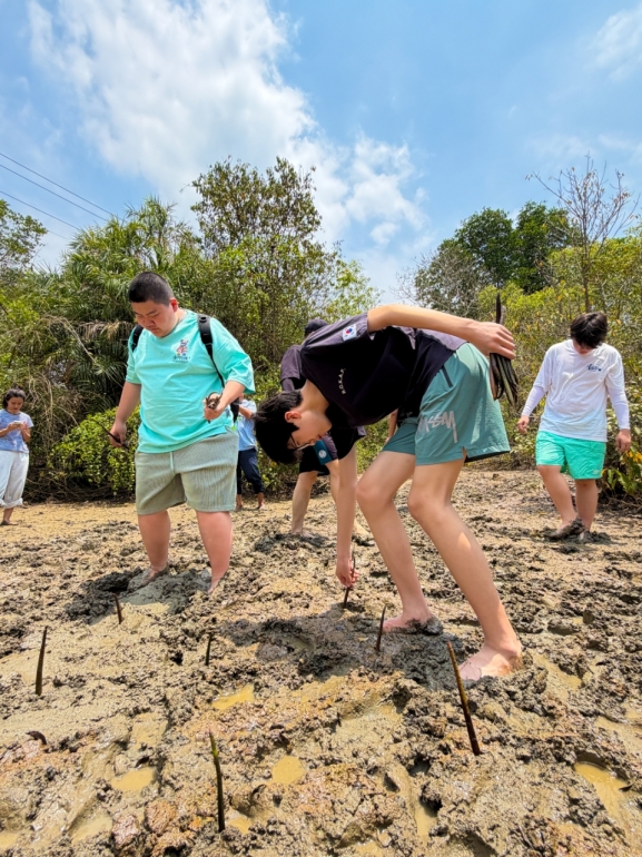 맹그로브 숲 복원을 위한 나무 심기 봉사활동을 진행하며 해안 생태계 보호의 중요성을 직접 체험하는 소중한 시간을 가졌습니다.