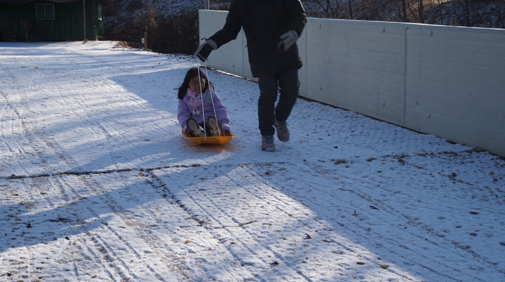 이번 활동은 교장선생님께서 직접 파주 부지에 학생들을 위한 눈썰매장과 따뜻한 휴게 공간을 조성하여,
